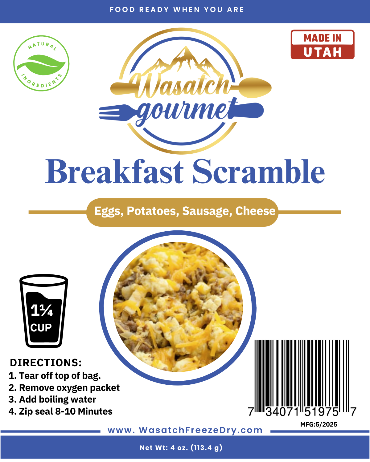 Our serving sized mylar bags are their own oven. Add hot water and in 5-8 minutes, you are ready to enjoy a meal without fillers, chemicals or preservatives.